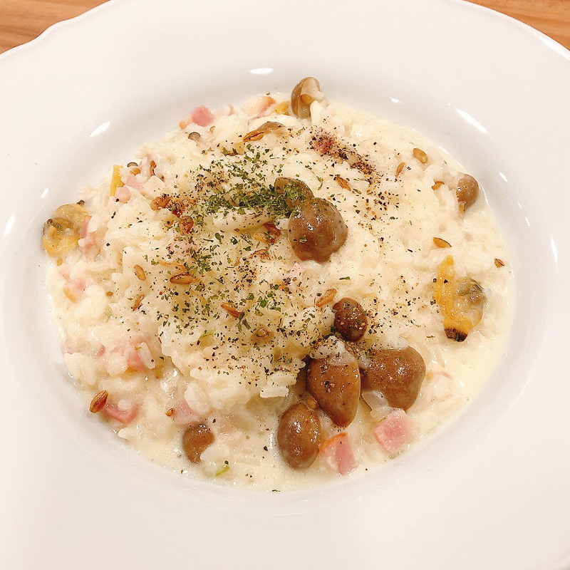 人気メニューがリニューアルして再登場!プロテイン入りでたんぱく質量がアップしました♪寒い季節にもってこいの一品。きのこやあさりが入ったクリーミーなリゾットです。