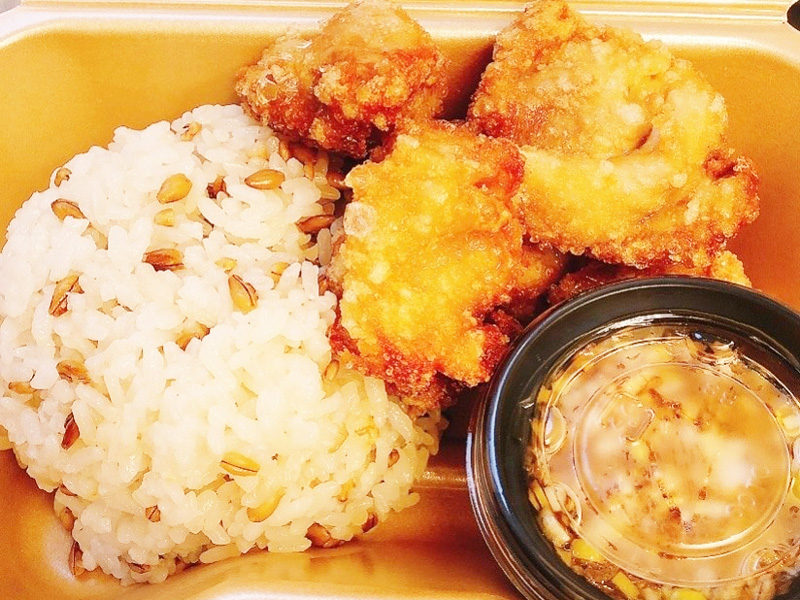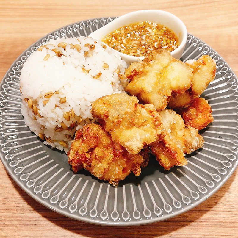 酸味の効いたねぎダレがかかった唐揚げです。タレにはちみつを使用しています。