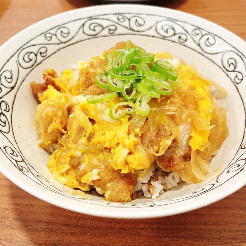 当店自慢のからあげを使用しています。旨味たっぷりの玉ねぎをふんわり卵でとじています。
