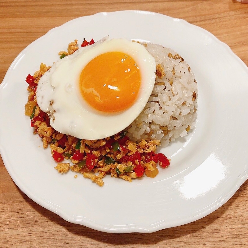 鶏ひき肉と野菜をナンプラーなどで炒めたタイの定番料理です。異国の風味をお楽しみください。