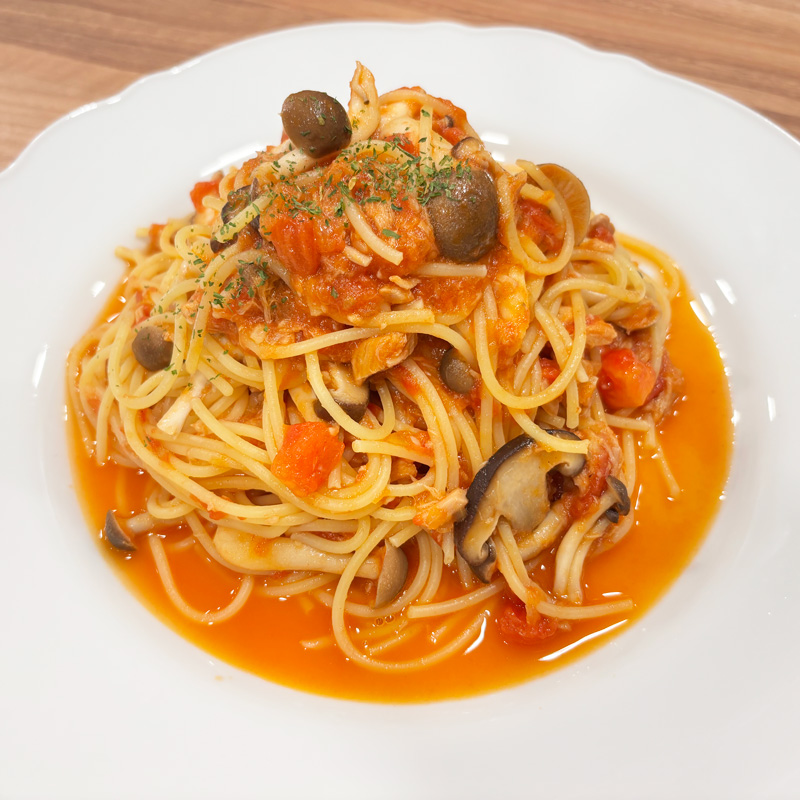 4種類のきのこをたっぷり使用し、ツナの旨みが溶け込んだトマトソース。きのこの豊富な食物繊維でお腹に優しく満足感があります!