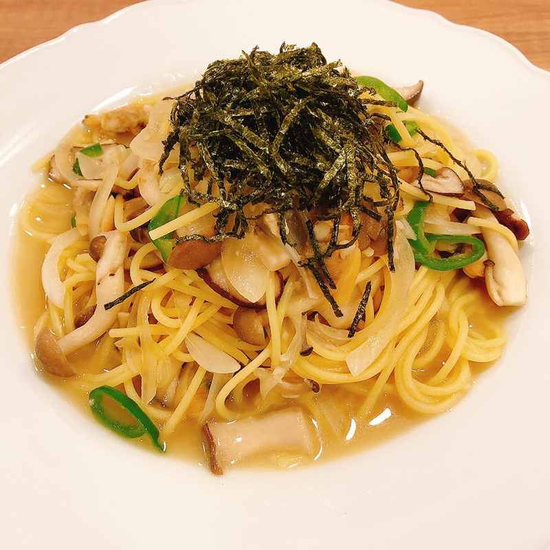 数種類のきのこを使用し、それぞれの食感と風味が楽しめます。あさりの旨味がたまらない和風味のスパゲッティです